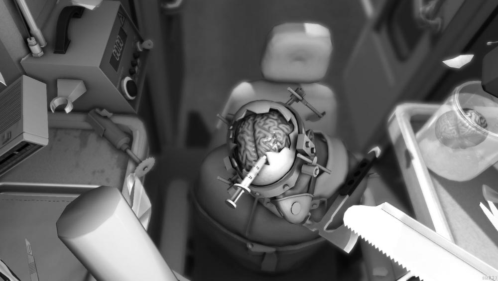 Ein Patient liegt anästhesiert auf dem OP-Tisch und begibt sich vertrauensvoll in die unbeholfenen Hände des Spielers. Dieser sollte nun eigentlich mit präzisen Handgriffen komplizierte medizinische Eingriffe vornehmen, ringt allerdings stattdessen eher damit, das Greifen von Gegenständen zu erlernen oder auch damit, das ihm nicht seine Armbanduhr in die ausgehöhlte Magengrube des Patienten plumpst.