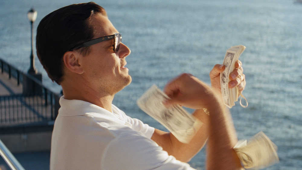 Ironie ist wiederum dem Drehbuch von Terence Winter (Die Sopranos, Boardwalk Empire) nicht abzusprechen, auch Humor findet sich reichlich. Was von vielen Seiten beanstandet wird, ist das Fehlen der Opfersicht. Tatsächlich kommen Belforts Opfer nie vor – was aber nicht heißt, das der Wolf gut wegkommt. Bei aller Coolness, Selbstinszenierung als „Robin Hood“ sowie Leonardo DiCaprios überaus beeindruckender Darstellung ist Jordan Belfort letzten Endes eine erbärmliche und sogar naive Gestalt, die von einem Exzess in den nächsten lebt und schließlich sabbernd am Boden kriecht (das ist wörtlich gemeint). Dass Belfort nicht bis zur letzten Konsequenz widerwärtig erscheint, kann auch als Spiegel der heutigen Gesellschaft gelesen werden. Einerseits drücken sich darin landläufige Vorstellungen von Finanzhaien aus und der Eindruck, dass die Börsenspirale weiterhin auf den (menschlichen) Abgrund zusteuert, ohne aus der Krise gelernt zu haben. Belfort und seine Kumpanen sind unfähig, irgendetwas außerhalb ihrer eigenen Welt zu erfassen. Andererseits lebt Belfort die Wünsche und Träume des „kleinen Mannes“, der an Betrügereien nichts auszusetzen hat, sondern sie insgeheim bewundert, solange diese geschickt eingefädelt sind und nicht auffliegen. Der Traum vom besseren Leben ist für den Großteil der Menschheit nun mal mit Geld verbunden.