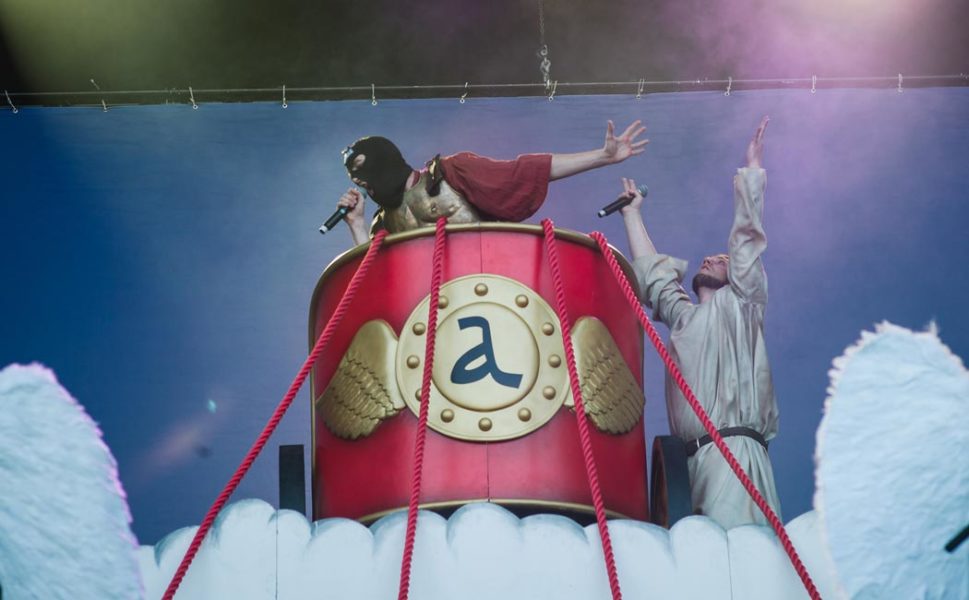 Ein anderes Wort als „Lärmbelästigung“, will man den gestrigen Auftritt der abstrus-seltsamen Band Alligatoah, kommt mir leider nicht in den Sinn. Wenn man Sätze ins Publikum brüllen muss, die in etwa so klingen: „Wieviele Jungfrauen sind denn im Publikum? Ach naja, das sind zu weeeenige“ oder man sich aber an scheinbar religiösen Abhandlungen darüber ergeht, welche Religion welchen Märtyrertod stirbt, um dann im Himmel eben besonders viele Jungfrauen zu erhaschen, muss man sich schon fragen, welcher Film in den Köpfen der Leute abläuft. Nämlich in den Köpfen derer, die dann auch noch einen auf front row screaming machen. Ganz ehrlich?