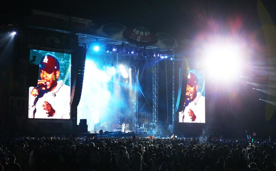 Dass dann im Anschluss eine großartige Band wie TV on the Radio ihr ausnahmslos gutes Liveset auf der Green Space spielen muss, sei dahingestellt. Auch Paul Banks mit seiner Band Interpol hat diesmal nicht die Hauptbühne, sondern eben nur die zweite bekommen. Das ist ja bis zu einem gewissen Grad ok. Noch dazu, weil am gestrigen Abend wirklich viele Leute nur Lamar-bedingt angereist sind: Ein Headliner, der eigentlich ebenso wenig aufs Frequency Festival gepasst hat (aber in Anbetracht dessen, dass man sich letztes Jahr Macklemore geholt hat, nachvollziehbar) war der sagenumwobene Kendrick Lamar. Der Auftritt, bei dem der Musiker leider ein paar Verständigungsprobleme mit dem Publikum hatte, war dann aber solide. Lamar setze sich ins Zeug und versuchte es mit Animation, dabei scheiterte er aber leider etwas.